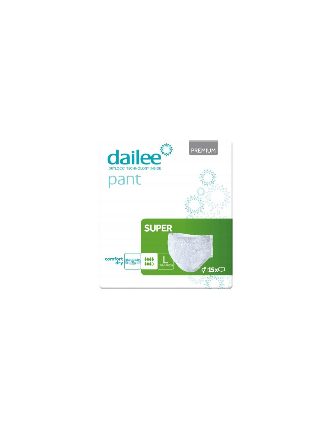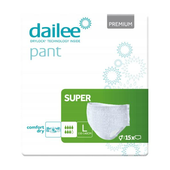 Dailee Pant Premium Super to majtki chłonne i pieluchomajtki dla dorosłych, które łączą skuteczność i komfort z dyskretnym wyglądem, idealne dla osób z umiarkowanym i ciężkim nietrzymaniem moczu. Wysoka chłonność, technologia Magical Tubes i elastyczne materiały zapewniają doskonałą ochronę i wygodę noszenia. Produkty Dailee są chętnie wybierane przez użytkowników ceniących swobodę ruchów oraz niezawodność produktu, jednocześnie gwarantując zdrowie skóry i neutralizację zapachów.